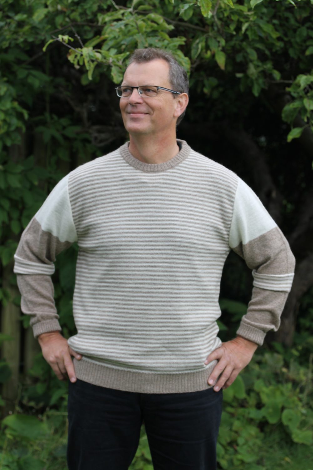 Der klassische Herrenpullover wurde entwickelt, um Sie zufrieden zu stellen, die den dezenten nordischen Stil mit einem Hauch von Peru bevorzugen. Das Design ist einfach, aber mit schönen gestreiften Details in Hellbraun und Cremeweiß, was diesen Pullover einfach macht, ohne langweilig zu sein. Der Pullover ist klassisch mit gerippten Kanten an Hals, Ärmeln und Po gestaltet.