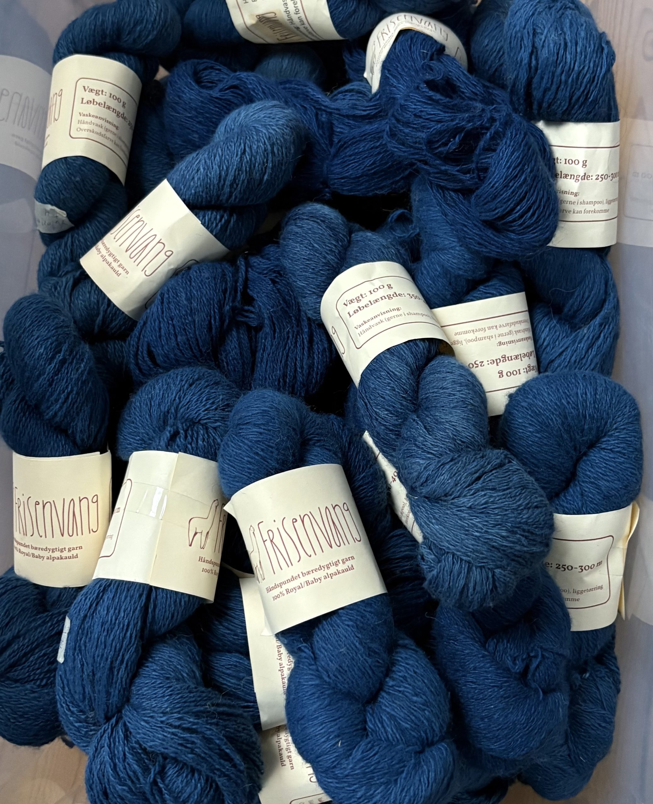 Frisenvangs alpaca garn er håndspundet og dette er bæredygtigt garn bestående af en blanding af 90-95% baby-alpacauld og 5-10% af det meget eksklusive royal-alpacauld. Garnet er produceret efter økologiske metoder.