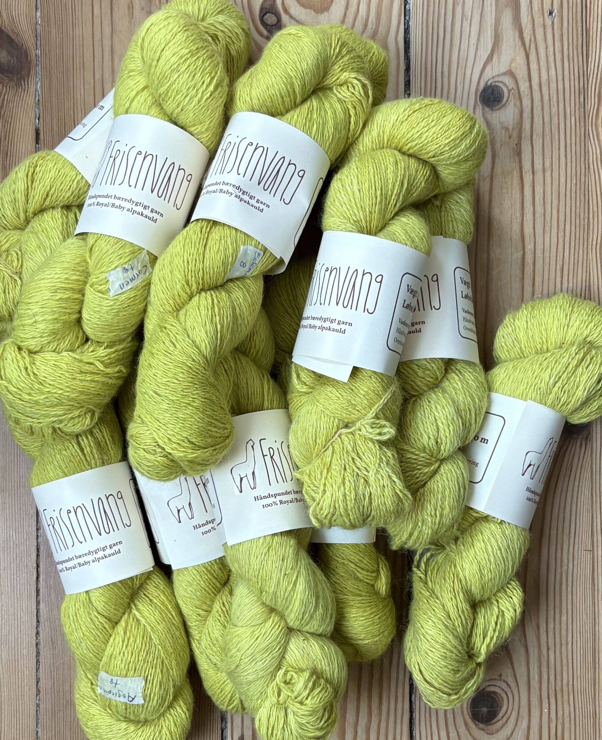 Håndfarvet garn, Lemon/limefarvet garn af 100% alpacauld