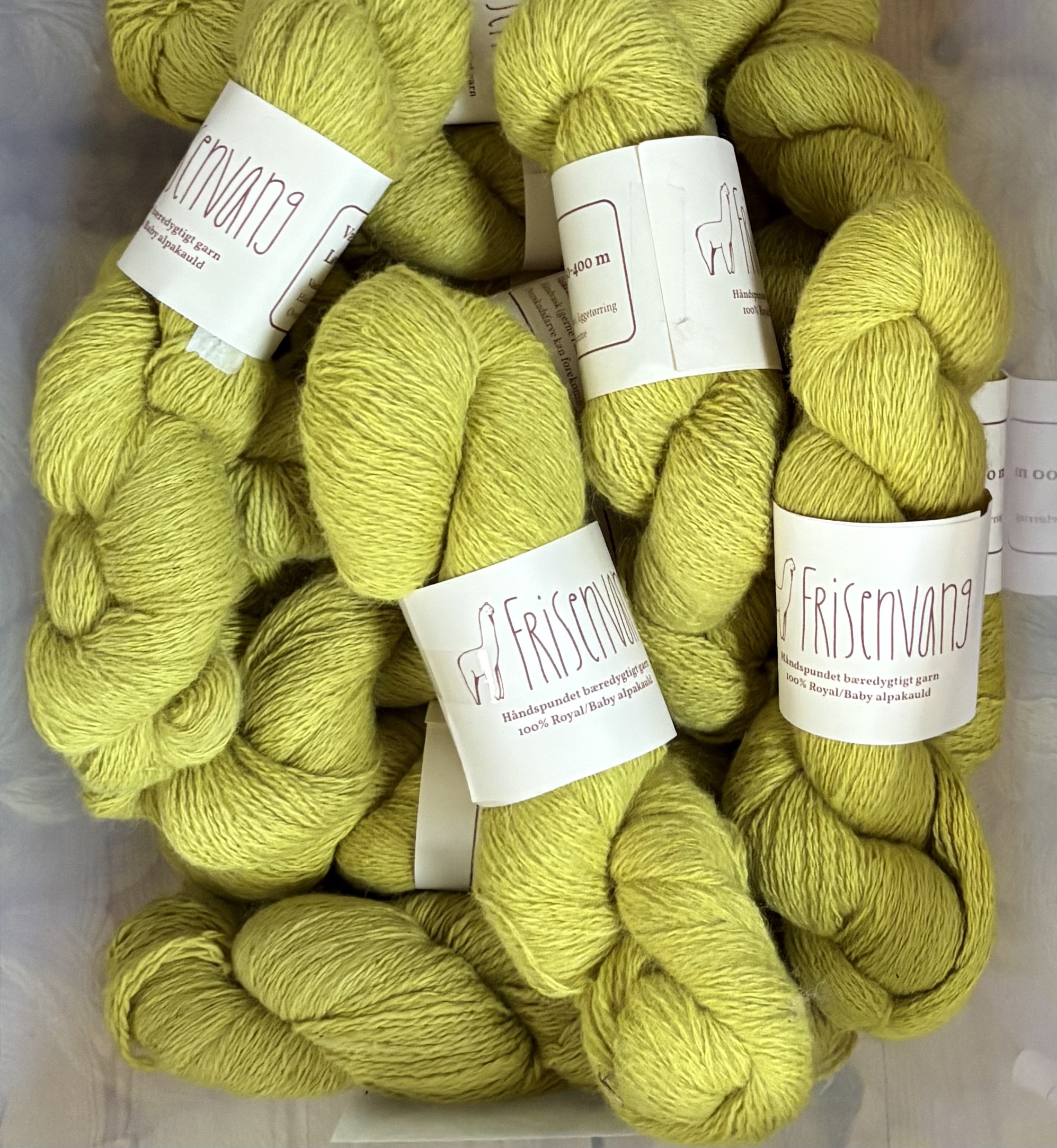 Frisenvangs alpaca garn er håndspundet og dette er bæredygtigt garn bestående af en blanding af 90-95% baby-alpacauld og 5-10% af det meget eksklusive royal-alpacauld. Garnet er produceret efter økologiske metoder.