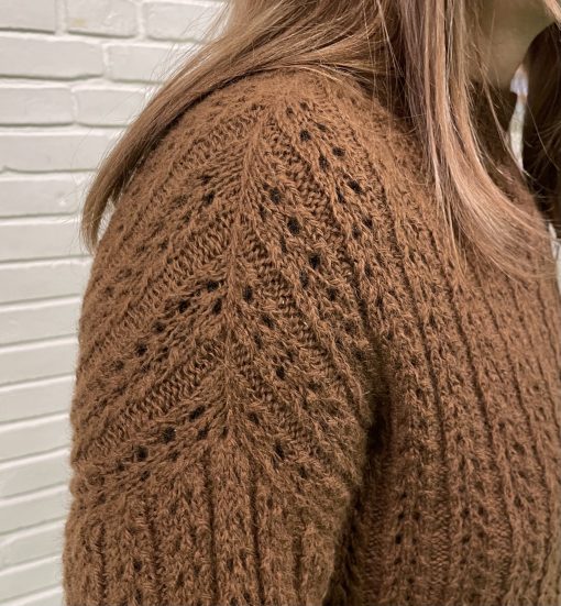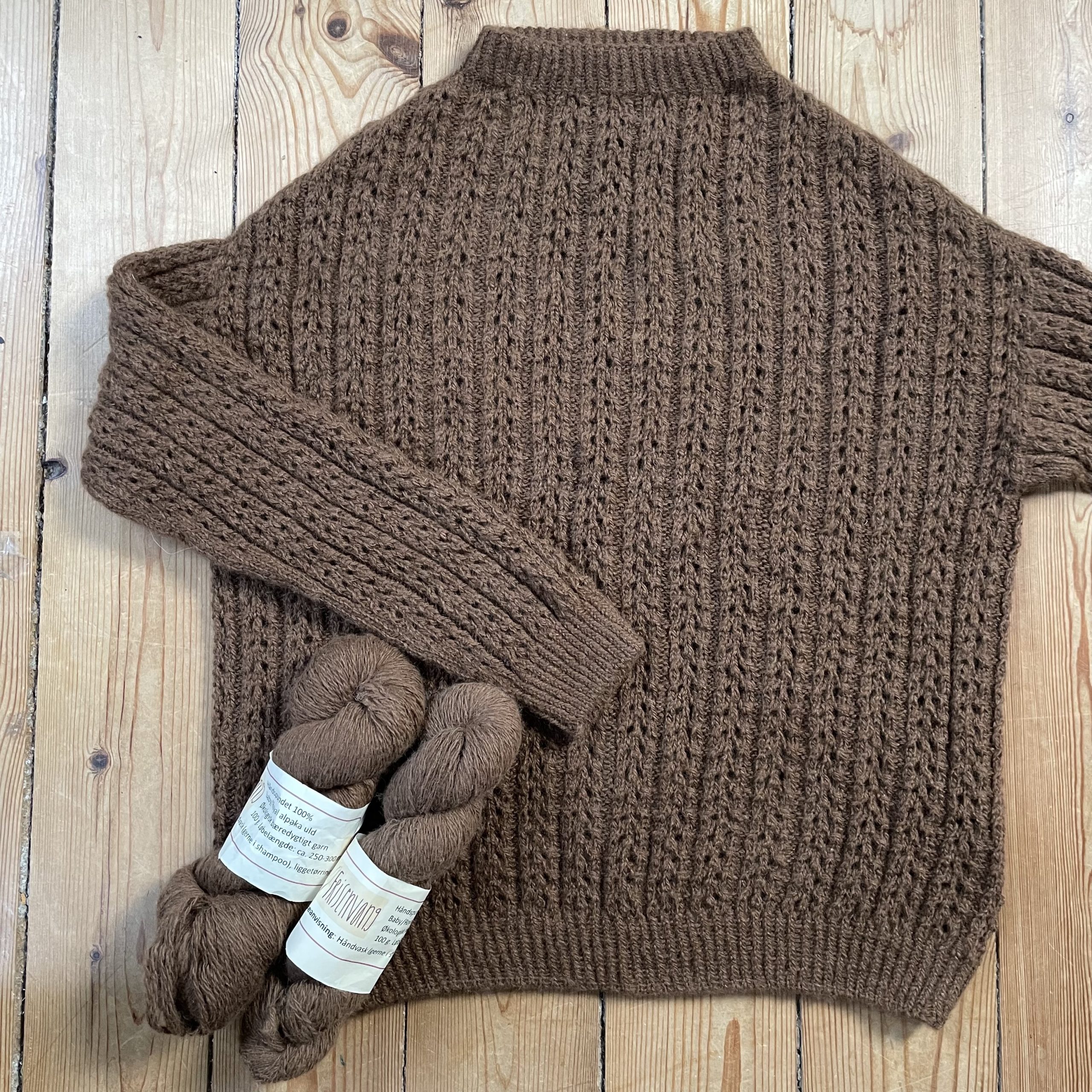 Sunny Delight sweater designet af  Knik & Relax. Strikkekit med opskrift og Frisenvangs håndspundne 100% royal/baby alpaca garn.